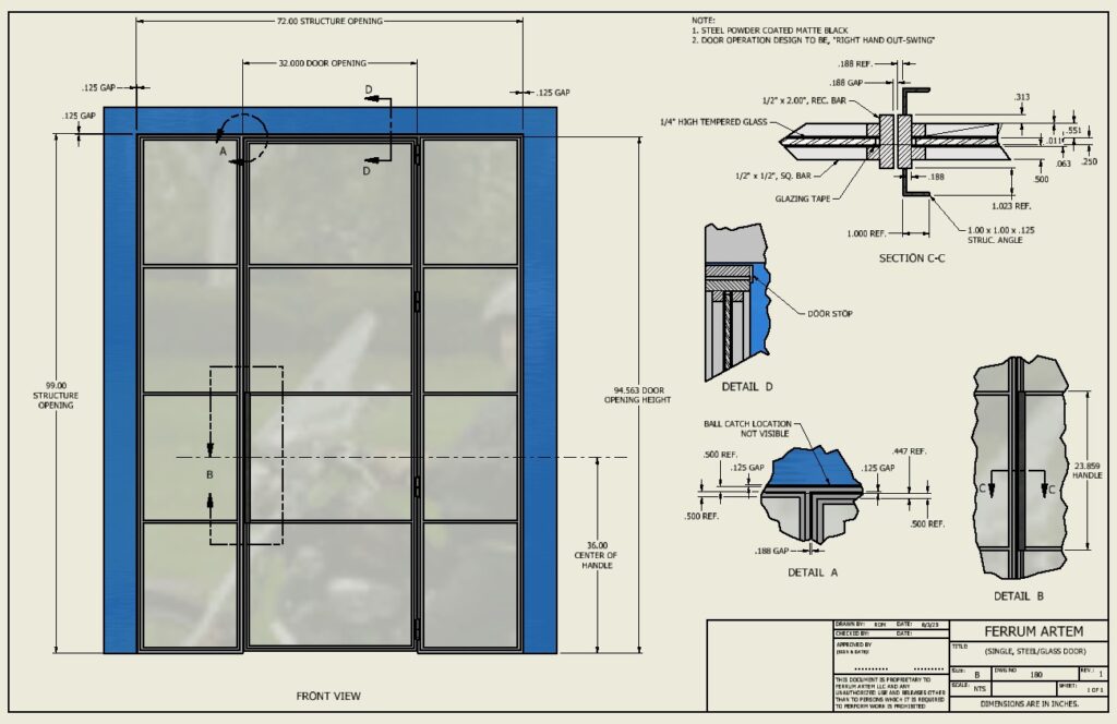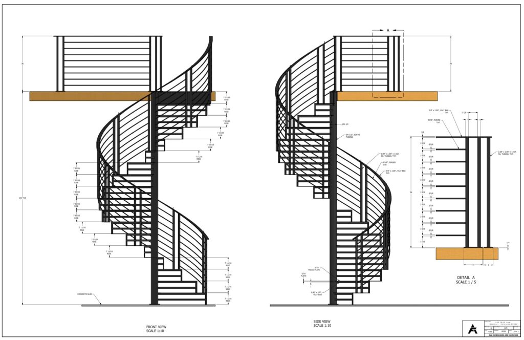 Full fabrication drawing packages for stairs, railings, doors, and structural steel. We also source quotes from 5 fabricators and oversee installation.